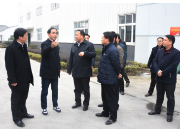 Ma Yanzhou (fourth from right), secretary of the CPC Huangmei County Party Committee, visited the company.