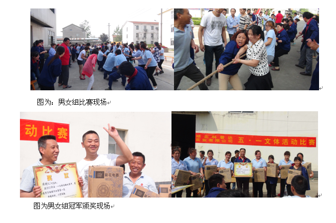 發布日期:2015/5/2 17:05:47????瀏覽次數:春風喜迎勞動節,舒展眉頭度五一。為豐富職工文化生活。4月30日上午,湖北科普達實業有限公司開展了慶“五一”廣場舞、拔河比賽文體活動。此次活動由工會、辦公室共同組織舉辦,公司全體員工積極參與,場面火爆,充分展現了公司員工團結向上,朝氣蓬勃的精神風貌。